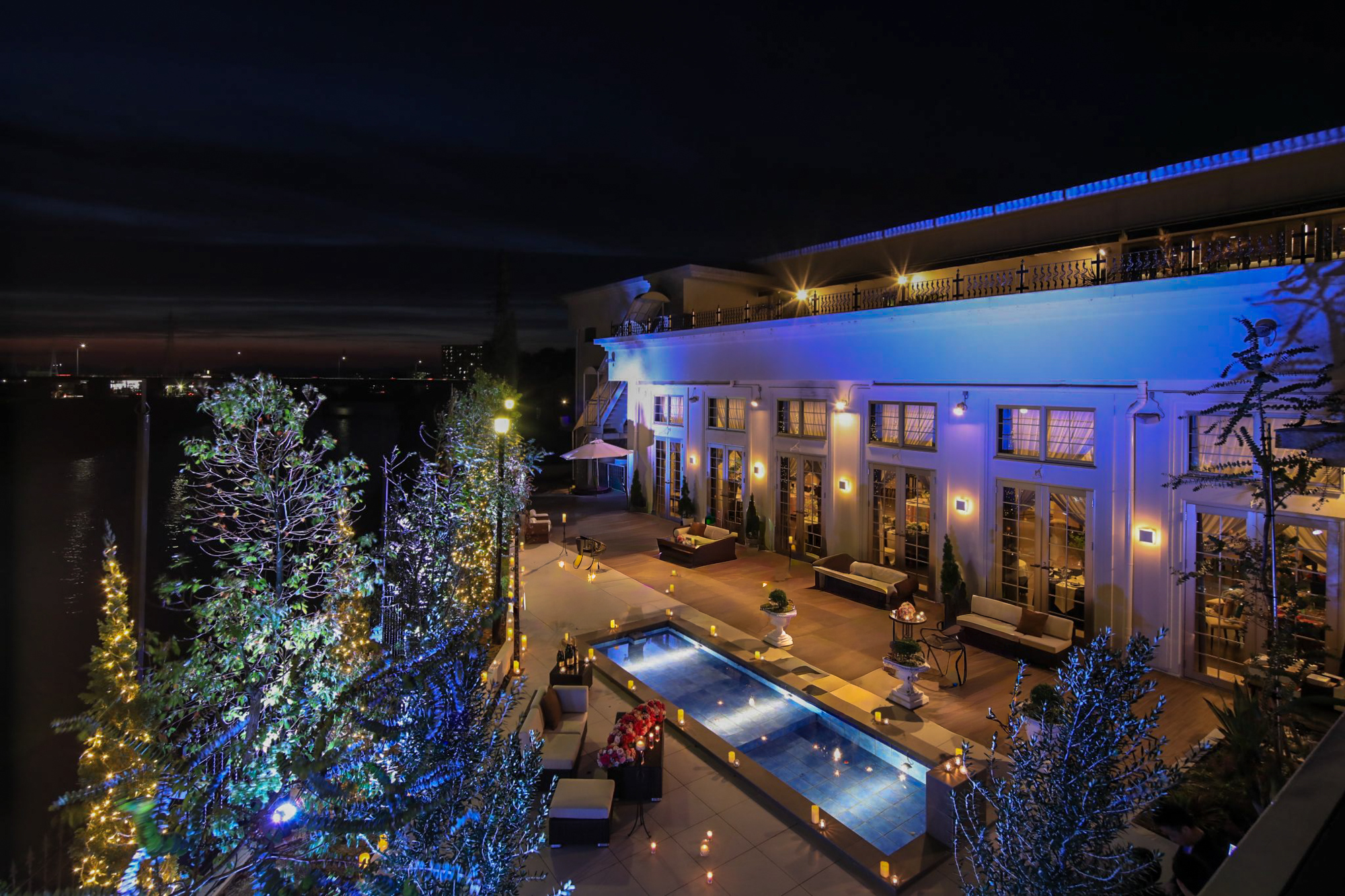 気品あるインテリアと専属シェフによる料理、そしてライブステージにも対応する音響・照明・映像設備を備え、人生の節目を彩る特別なひとときを演出いたします。
